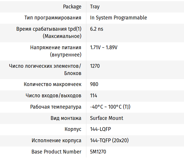 5M1270ZT144I5N микросхема интегральная электронная в корпусе TQFP-144, производитель Intel Altera