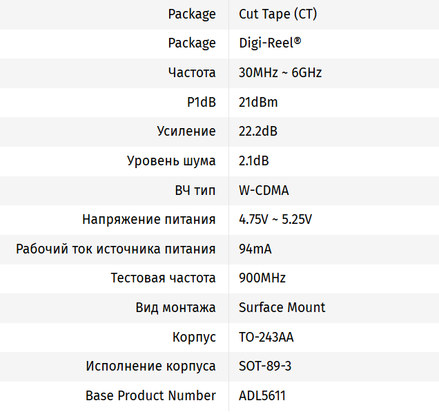 микросхема IC AMP W-CDMA 30MHZ-6GHZ SOT89-3, производитель: Analog Devices