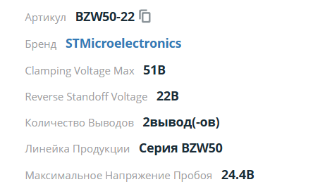 диод TVS Diode, Transil BZW50 Series, Unidirectional, 22 V, 51 V, R6, 2 Pins