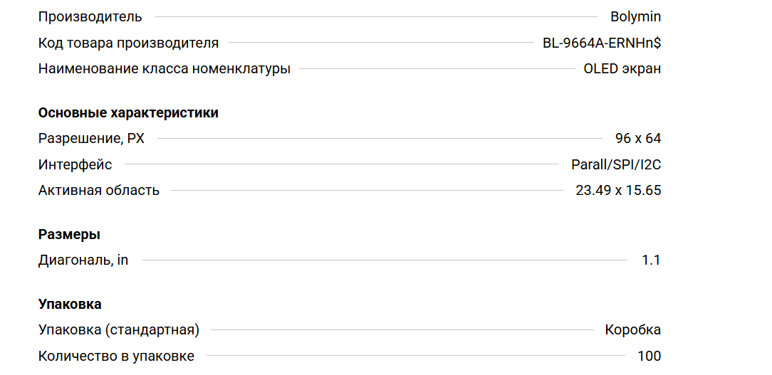 Дисплеи и модули индикации OLED экран 1.1, 96 x 64