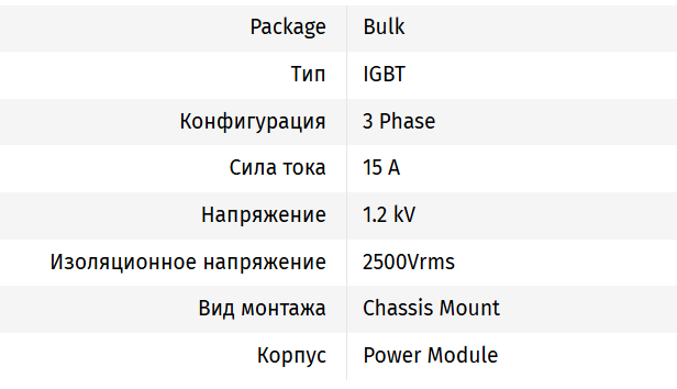 интеллектуальный силовой модуль (IPM - Intelligent Power Module) производства компаний Mitsubishi Electric или Powerex (является партнером Mitsubishi по полупроводникам). Он предназначен для применения в схемах управления мощностью, работающих на частотах до 20 кГц.