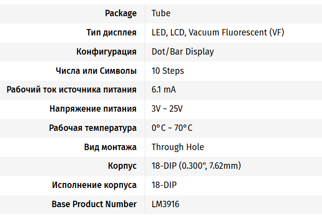 Микросхема: IC DRVR DOT/BAR DISPLAY 18DIP, Драйвер дисплея точка/полоса 10 светодиодов, производитель: Texas Instruments