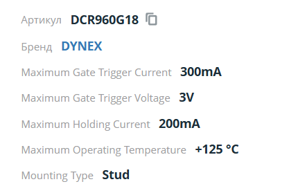 тиристор, 1800V, 960A 300mA, производитель: DYNEX