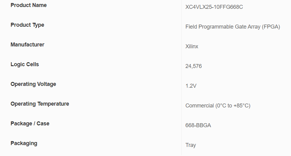 XC4VLX25-10FFG668C - производитель Xilinx Inc. FPGA Virtex-4 LX Family 24192 Cells 90nm Technology 1.2V 668-Pin FCBGA